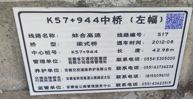 蚌合高速K57+944處中橋(左幅)的梁式橋,位于曹庵樞紐往蚌埠方向···